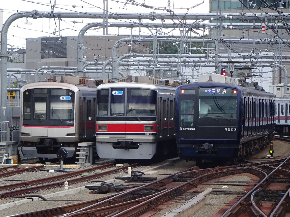 5186F 志村三丁目発着(youtube) 5080系は、目黒線の車両の運用増に伴い登場した車両。車体構造こそ5000系と共通ですが、初期の編成はドアチャイムも3000系と同様だったりと、他の5000系統とは差異がありました。 モーターも東芝IGBTで、基本の5000系統とは異なっています。 | |