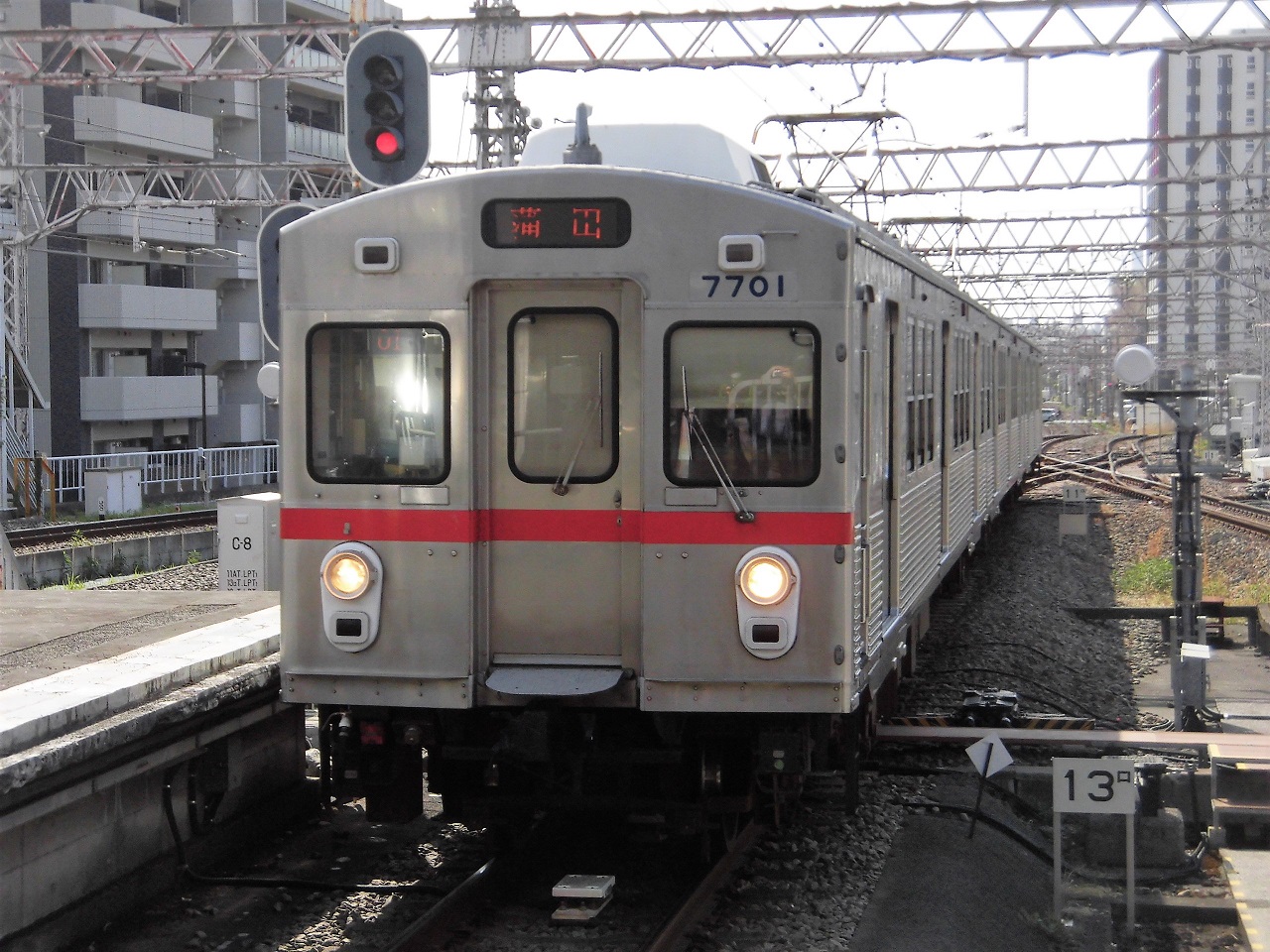 7700系が名車7000系の生まれ変わりな事は上で述べましたが、その7000系のトップナンバーを更新して登場したのがこの7910F。他の車両と仕様は何も変わりませんが、鉄道史的にも重要な存在です。 撮影地:雪が谷大塚〜御嶽山 |