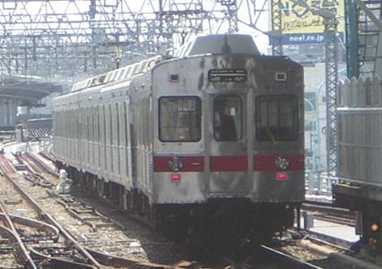 こんな画像で恐れ入りますが、8000系では1978年に軽量試作車が2両導入され、後の8090系への礎となりました。この車両を組み込んだ編成には、更新によって歌舞伎塗装になった車両も在籍しており、無塗装ともども8090系では存在しなかった塗装パターンが存在していた事になります。こんな写真なので2両のうちのどちらを撮影したのかは分かりません。