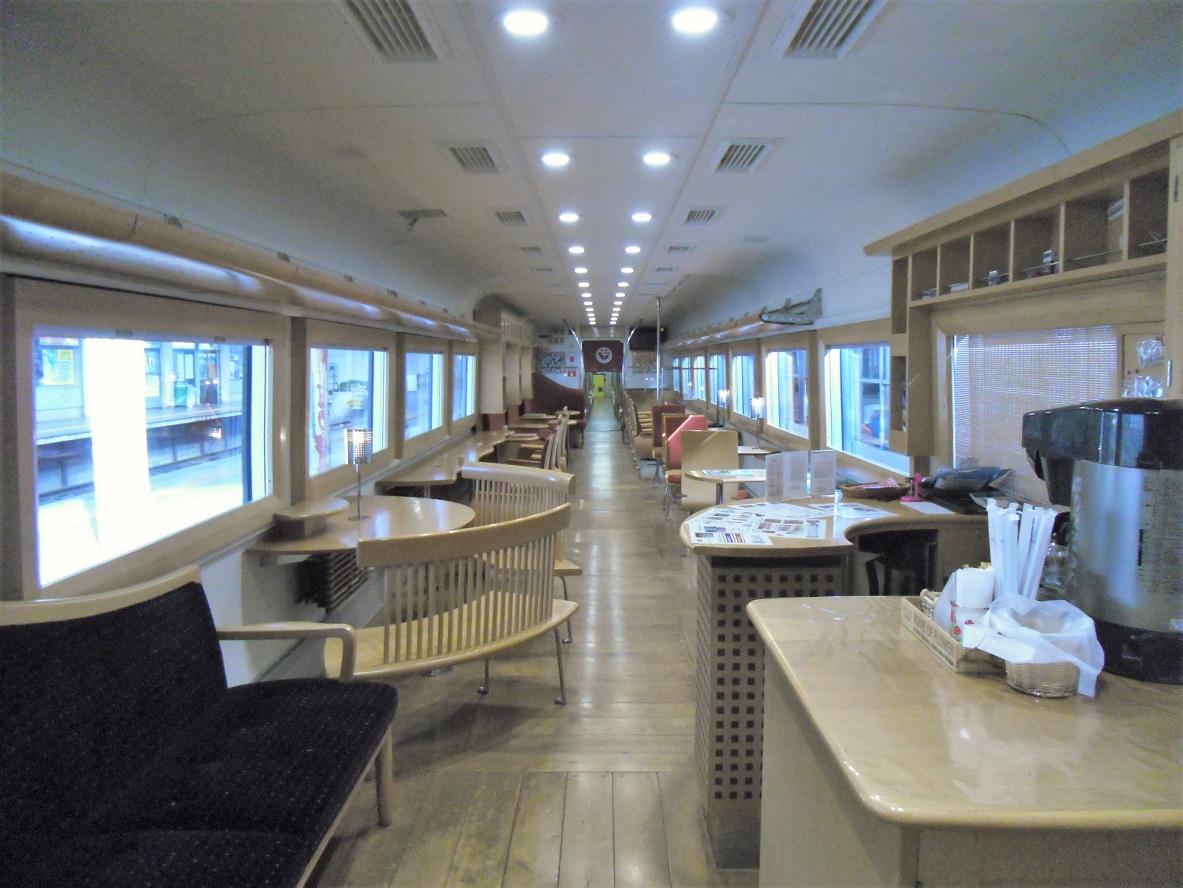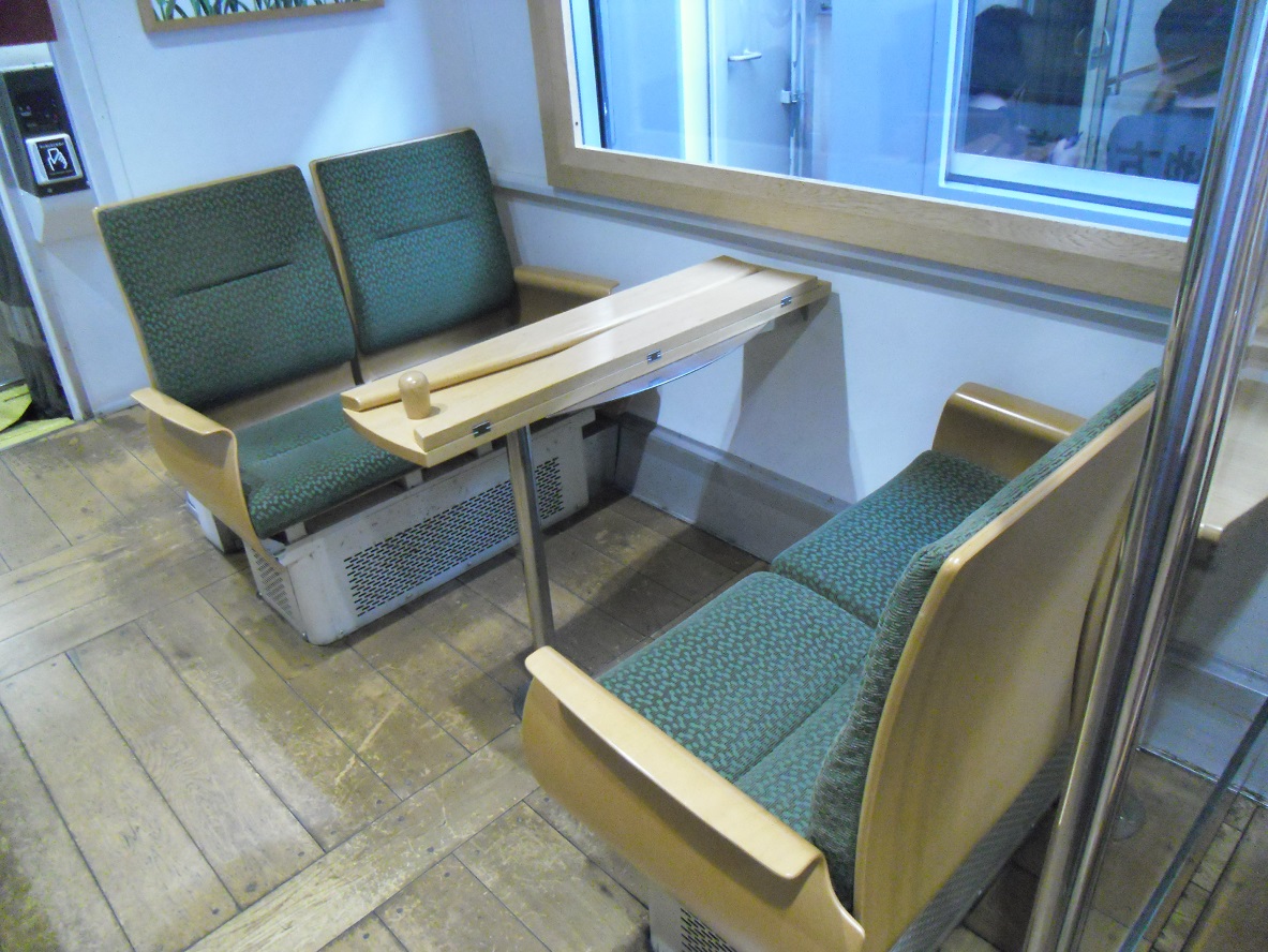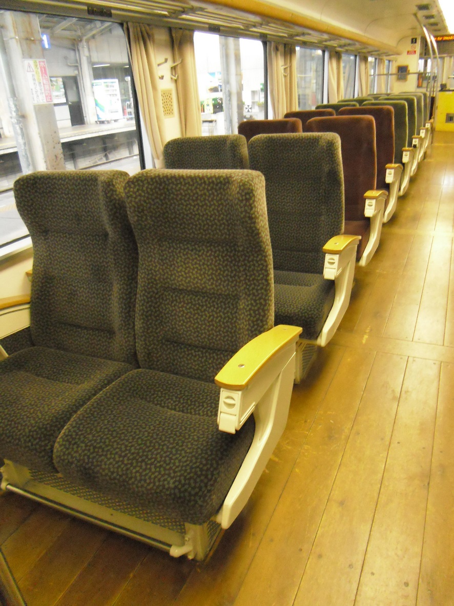先述のとおり、16013Fは2011年に観光列車「アルプスエキスプレス」としてリニューアル。仕掛け人は毎度おなじみ水戸岡鋭治で、見た目の変化は殆どない物の、車内は大改装を受け、観光列車らしい出で立ちになりました。