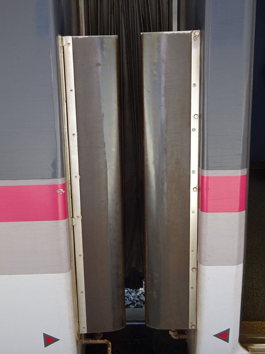 | 吊り革 | 富山地鉄ロゴ | 標識灯 | パンタグラフ | 標識灯 | 転落防止幌 |