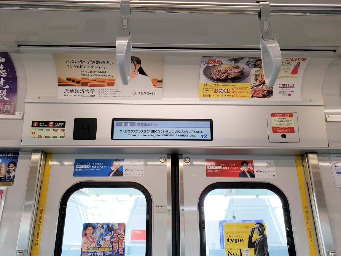 | 車内 | 車椅子スペース | つり革 | 台車 | パンタグラフ | TXロゴ |