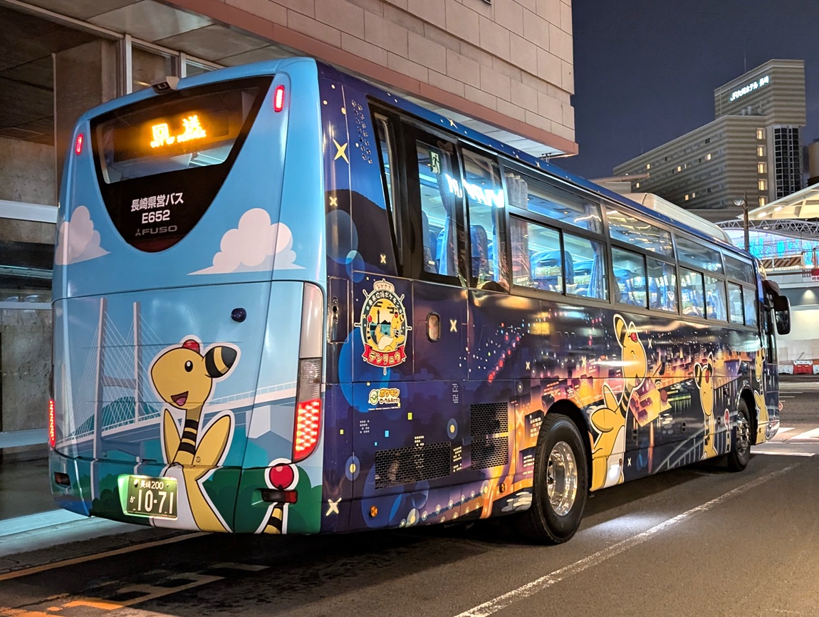 西肥バスのラッピング車は見れませんでした。 撮影地:長崎駅バスターミナル |