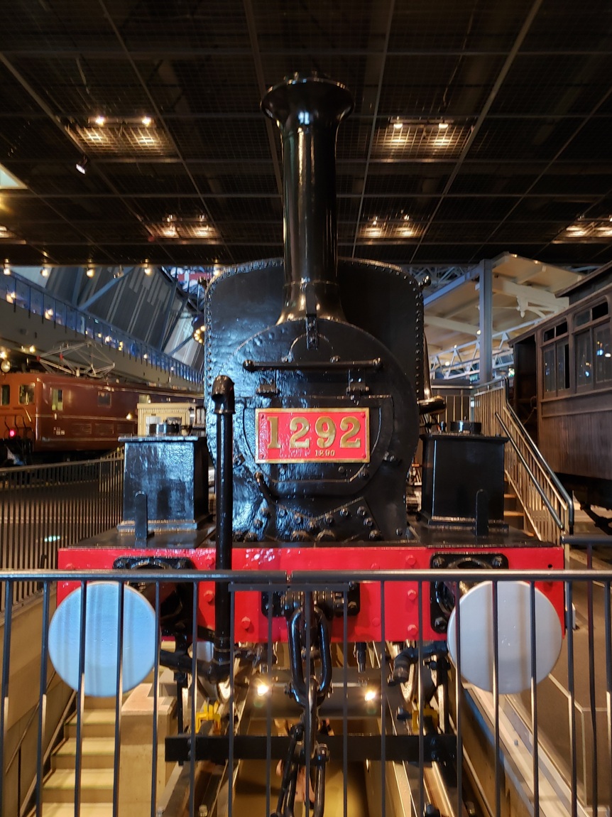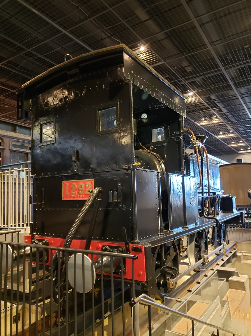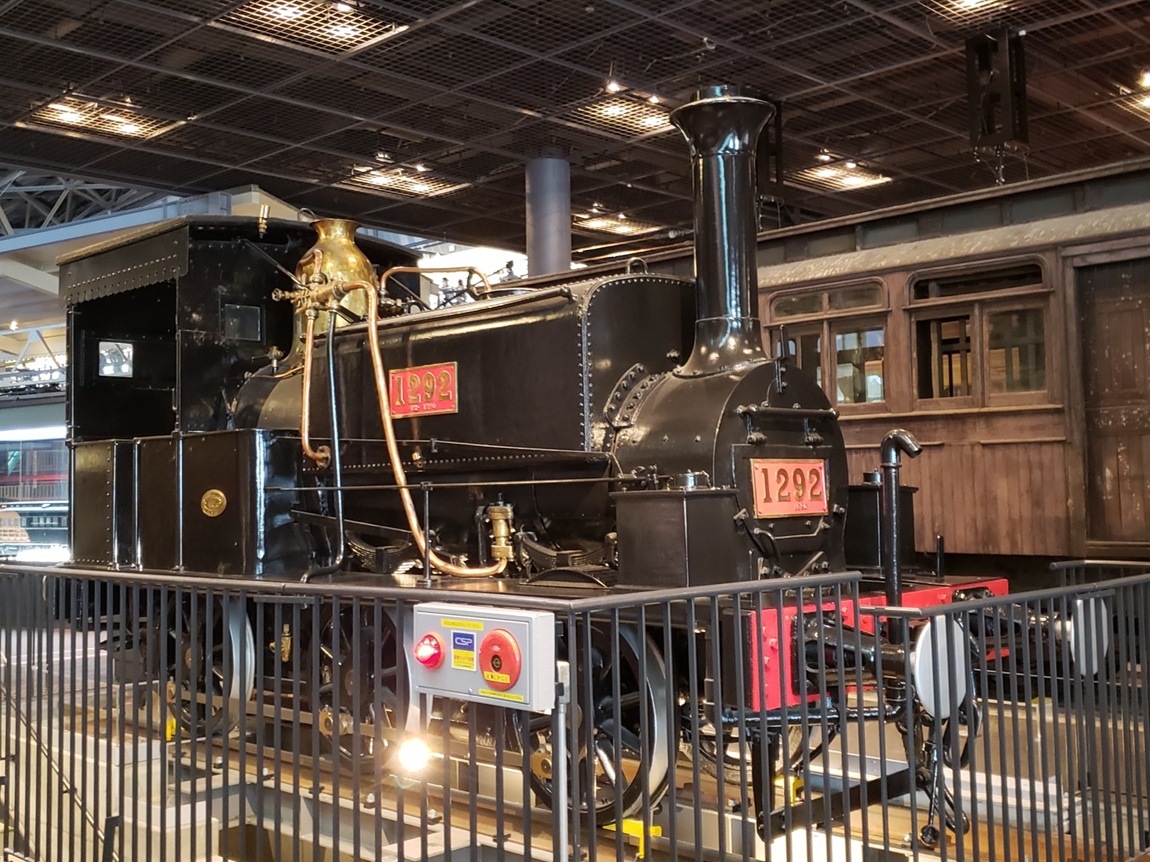 1875年に、鉄道建設工事用に導入された機関車で、イギリス製。合計3両が導入されたとのこと。上写真の1292は、埼玉県川口市の善光寺付近で陸揚げされたことから「善光」という愛称があるとのこと。鉄道記念物に指定されています。
