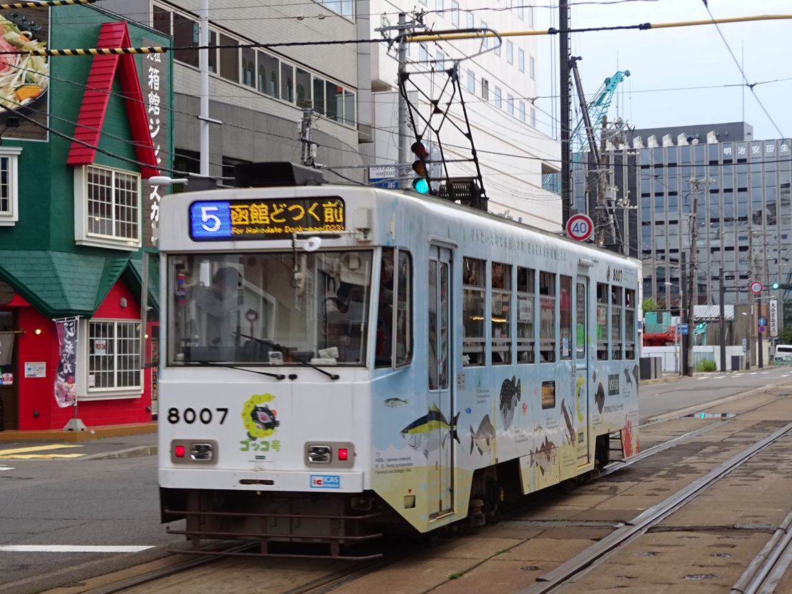 旧来の800形の車体更新によって1990年から少しずつ増備が進んだ形式で、函館市企業局の車両としては初となる砂撒き装置が取り付けられています。1997年までの間に8両が導入された所で製造がひと段落した…かと思われていたのですが、2012年になって2両が増備されました。同じ形式でここまで製造期間が開くのも珍しいのではないでしょうか。これだけ製造期間が空いた割には大きな仕様の変化はなく、簡単な違いは標識灯の形状が異なる事程度です。