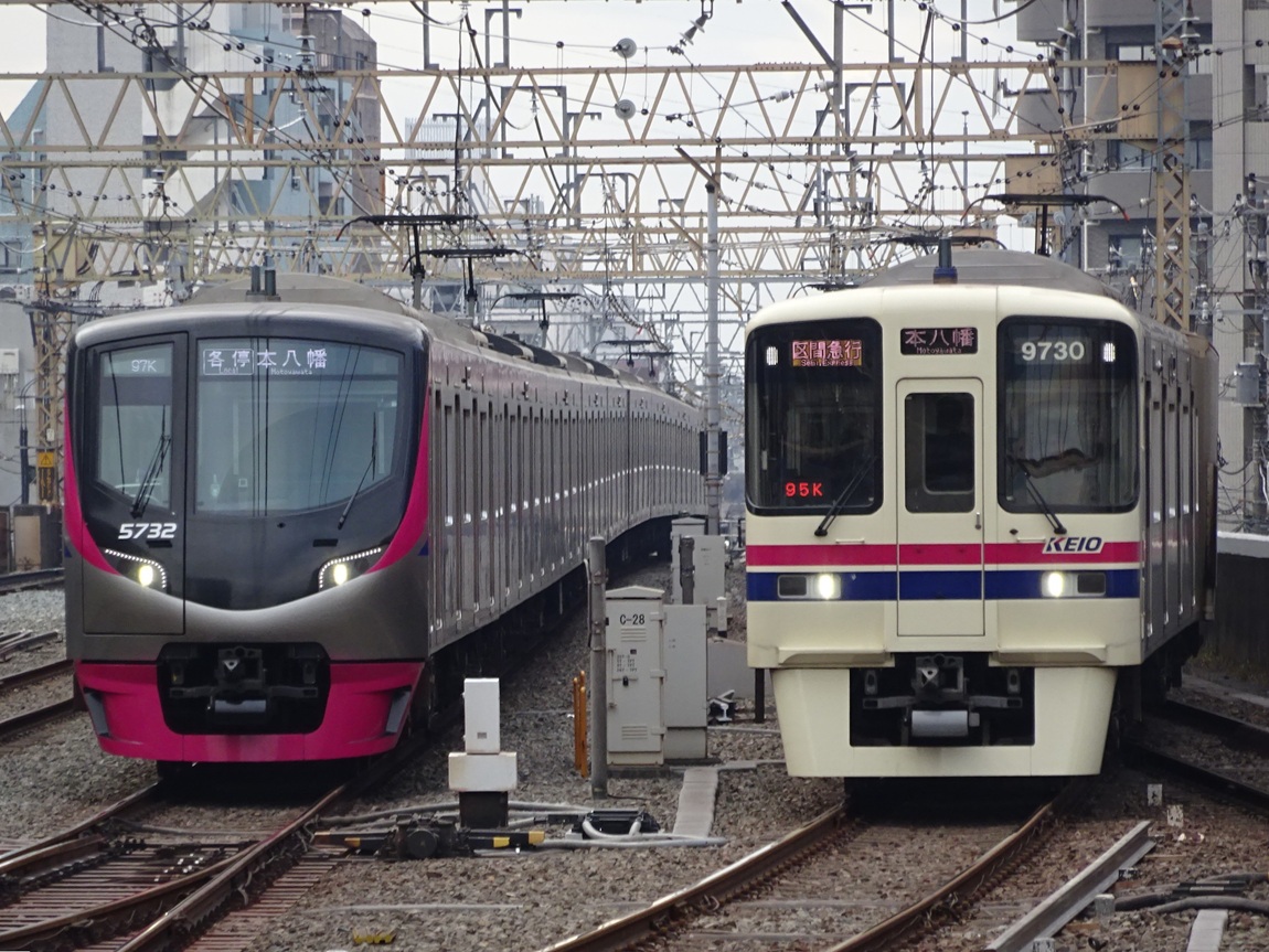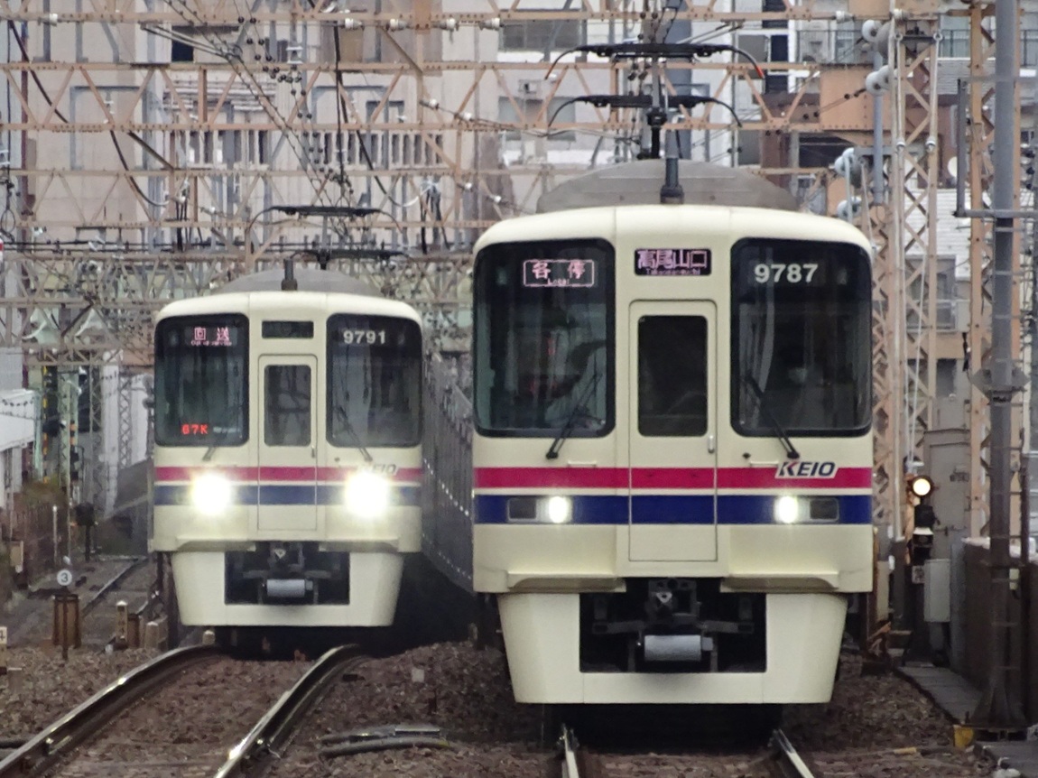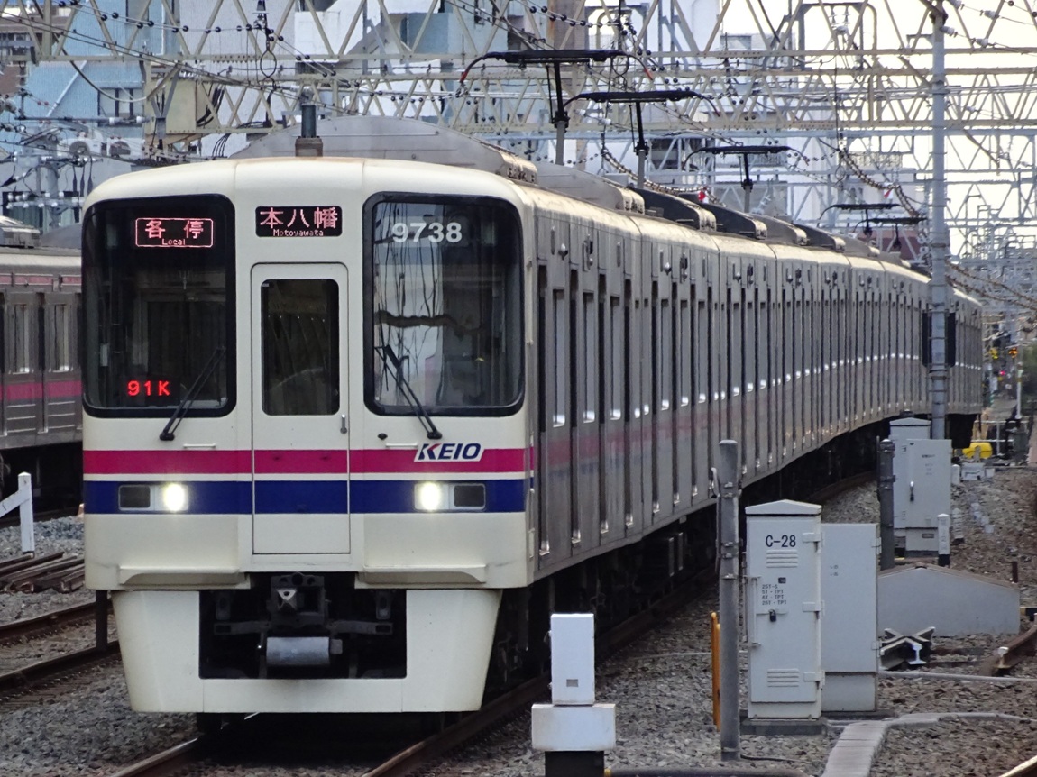 ・9000系 千歳烏山発着(youtube) 京王9000系のうち、8連で導入された初期の車両の発着の様子。モーター音自体は30番台と全く変わりません。8連ゆえ、各駅停車の運用が主となります。 |