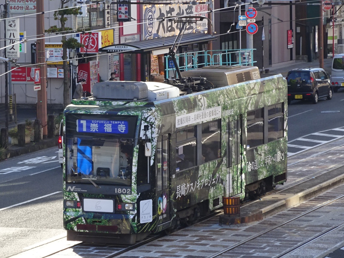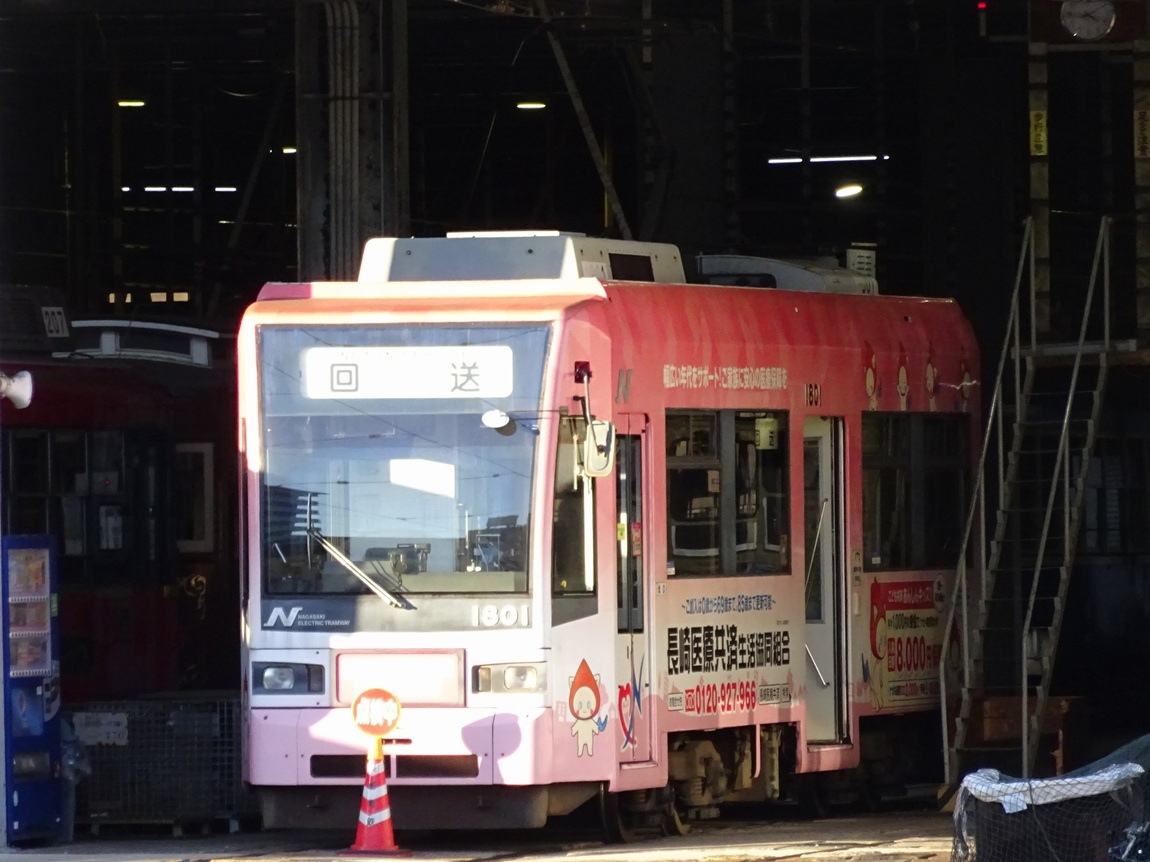 ・浦上車庫前発着集(youtube) 古めかしい車両もまだまだ目立っている長崎電気軌道ですが、吊り掛け式ながら車体は新しい車両や、バリアフリーに対応した新型車両も在籍しています。浦上車庫前で少し待ってみた間に次々やって来た車両を撮影したのですが、最後の5000形以外は全て吊り掛け車です。特に1800形は見た目が近代的なので吊り掛け式である事が意外に思えてしまいます。 本当は5000形だけ映像を分けようとも思ったのですが、モーター音があまりよく分からない映像になってしまったので纏めてしまいました。 |