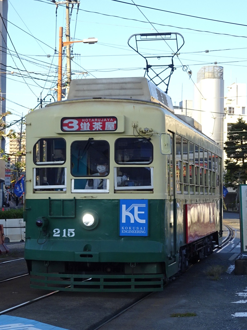 207号はビール電車、おでん電車…等といったイベント運行用に改造(2007年以降)されており、一般の営業には用いられていません。2020年には塗装が改められ「シティクルーズあかり」という愛称も設けられています。 撮影地:浦上車庫 |